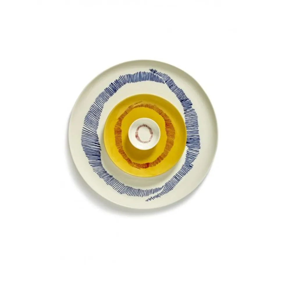 Dit witte serveerbord met blauwe organische streepjes voegt een vrolijk element toe aan elke tafelsetting. De speelse penseelstreken zijn kenmerkend voor de sfeer van Ottolenghi’s Feast collectie en maken het bord extra bijzonder.