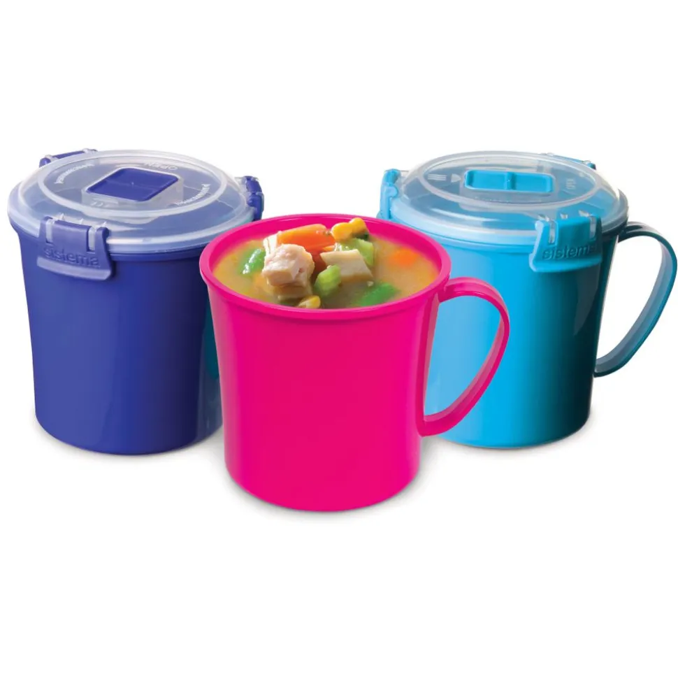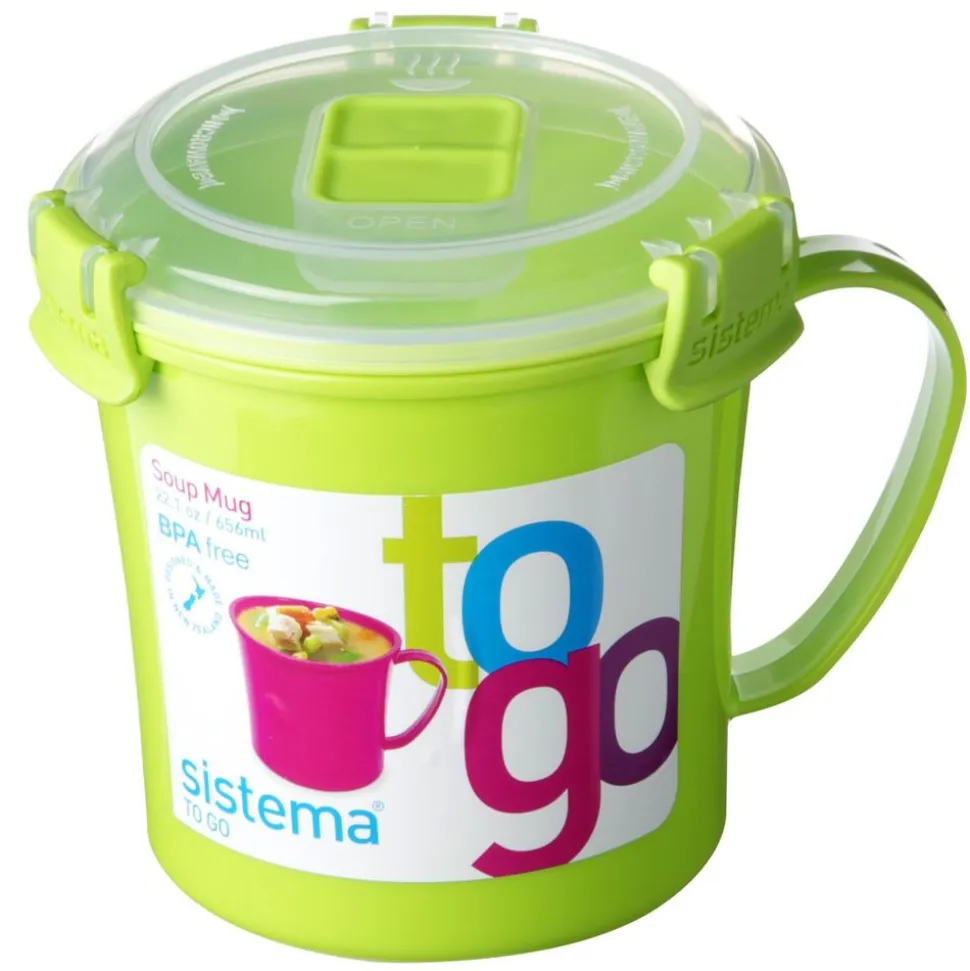De Sistema® Microgolf Soepmok is voorzien van een easy-grip handvat om het transport van warme soep te vergemakkelijken. De nieuwe en verbeterde stoomontluchter zorgt ervoor dat uw magnetron vrij blijft van voedselspetters. Verwarm de inhoud in de magnetron en eet direct uit de verpakking.