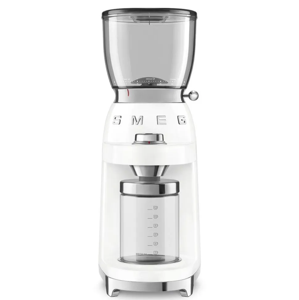 De Smeg CGF01 koffiemolen is ontworpen voor iedereen die wil genieten van de echte smaak van koffie, en die op zoek is naar het perfecte gereedschap voor het malen van hoge kwaliteit voor thuis, zonder in te boeten aan bruikbaarheid en stijl.