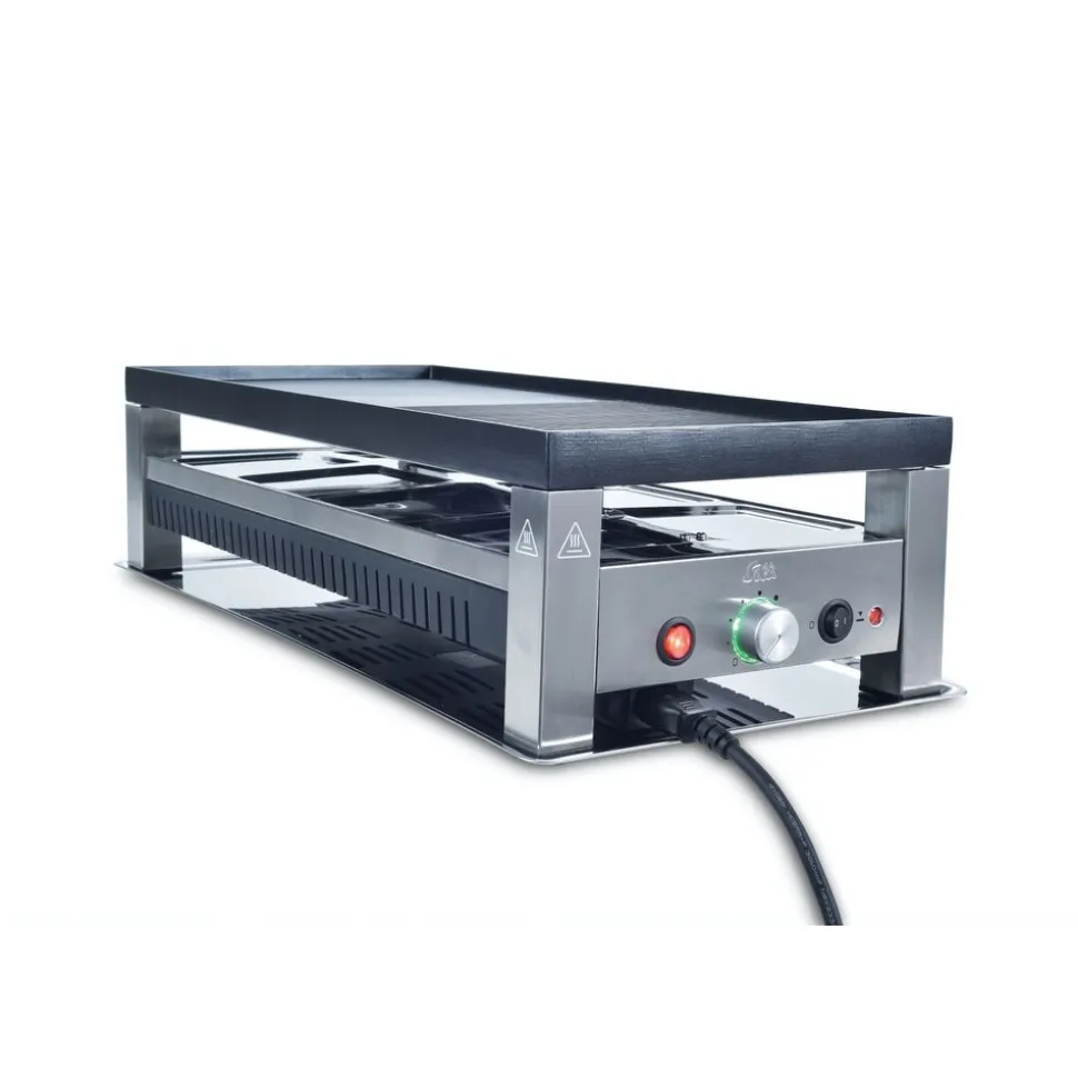 SOLIS Table Grill 5 in 1 is een multifunctionele tafelgrill met aantrekkelijk design. Voor een tafel van 8 personen kan met behulp van deze tafelgrill raclette, pizza`s en crêpes bereidt worden, maar er kan ook mee gewokt of gegrild worden.