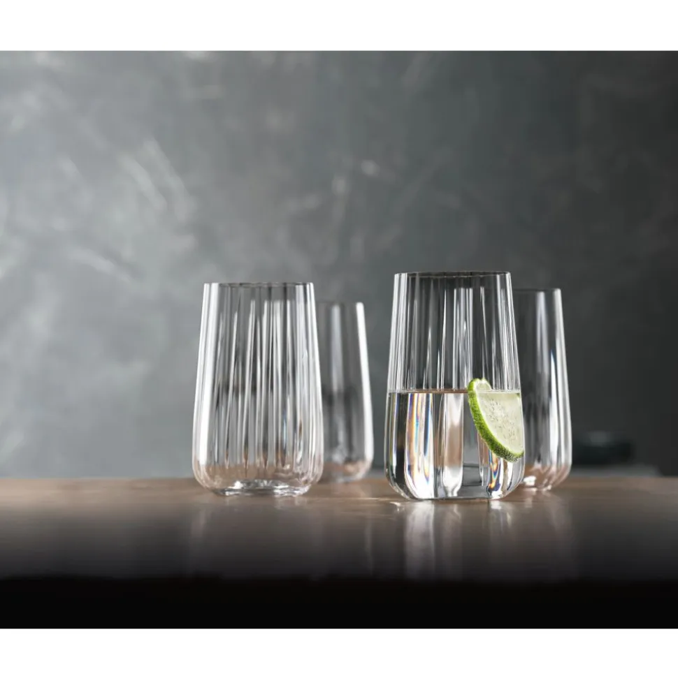 De SPIEGELAU LifeStyle glazen zijn thuis waar lifestyle en mode elkaar ontmoeten. Hun moderne diamantvorm wordt benadrukt door de lineaire decoratie. Met hun glans en opwindende optische effecten dragen deze kristallen glazen bij aan een hoogwaardige ambiance op elke eettafel.