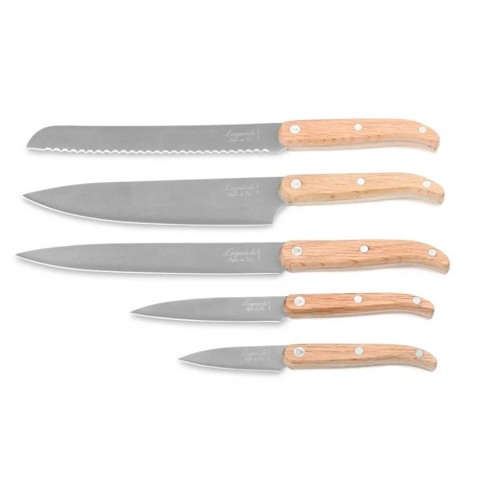 Style de Vie Innovation Line Messenset 5pcs Oak Stonewash Met Magnetisch Messenblok