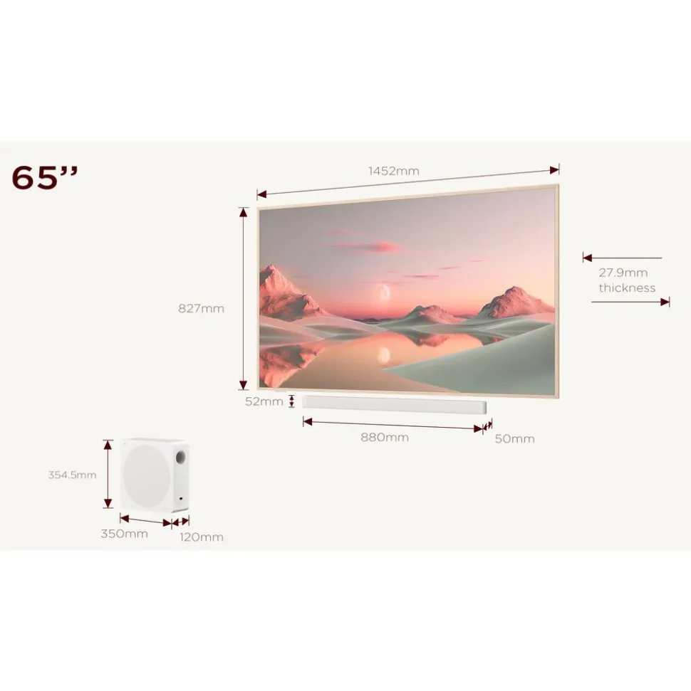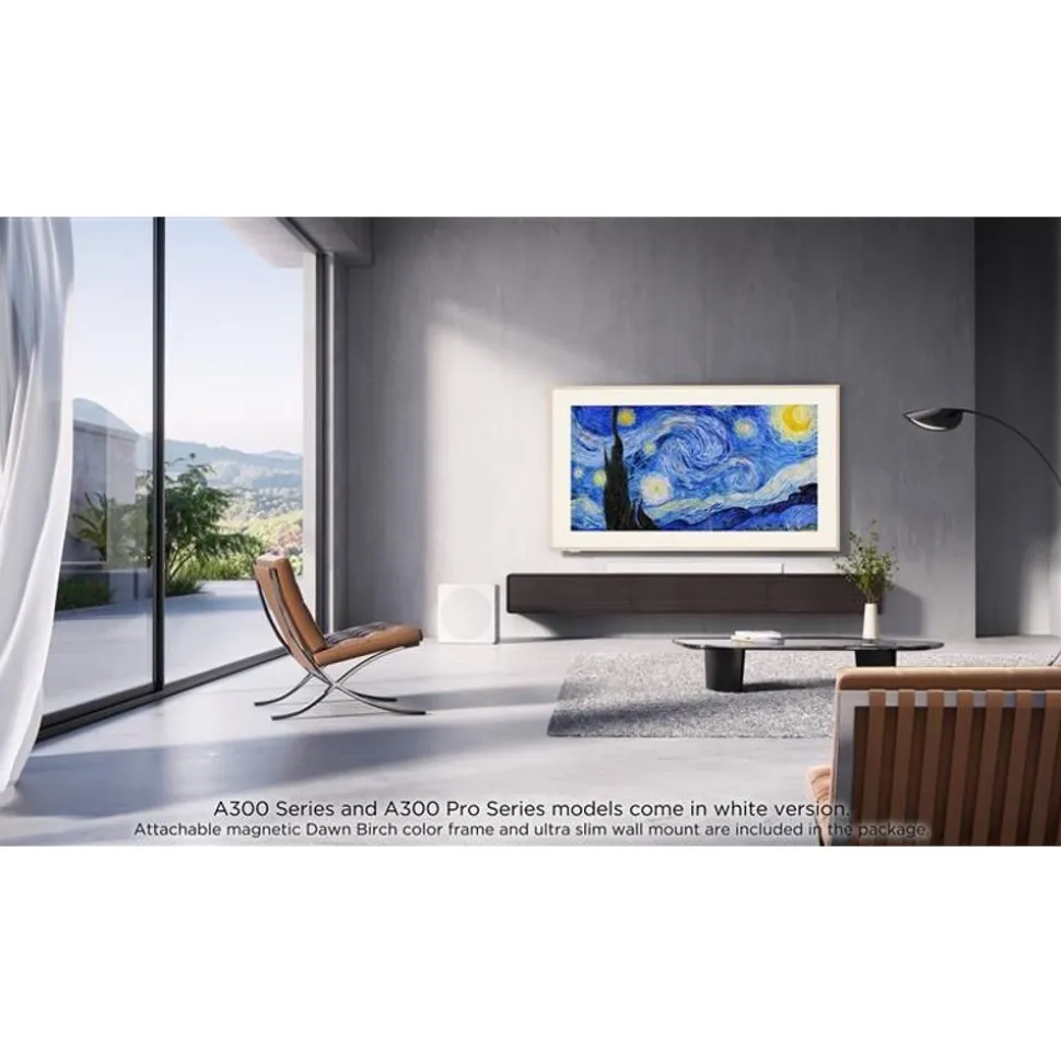 Met de TCL 65A300 PRO NXTVision smart-tv in wit kijk je tv in stijl. Het toestel heeft een ultradun ontwerp dat op een schilderij lijkt. Hierdoor creƫer je een nette opstelling aan de wand met een optionele houten lijst. De virtuele gallerij laat je de tv ook omtoveren tot een kunstwerk voor je muur. In de Art Library kies je welk schilderij je op het scherm toont. Het 4K QLED-scherm zorgt voor scherpe, kleurrijke beelden voor nog meer details. Technologieƫn als QLED PRO, HDR10+, Dolby Vision IQ en AI-beeldoptimalisatie zorgen bovendien dat kleuren, contrasten en helderheid er piekfijn uitzien. Ook games spelen uiterst soepel dankzij de hoge beeldverversing van 144 Hz. De PRO-editie is uitgerust met een kwaliteitsvolle Bang & Olufsen soundbar en subwoofer voor geweldig geluid.