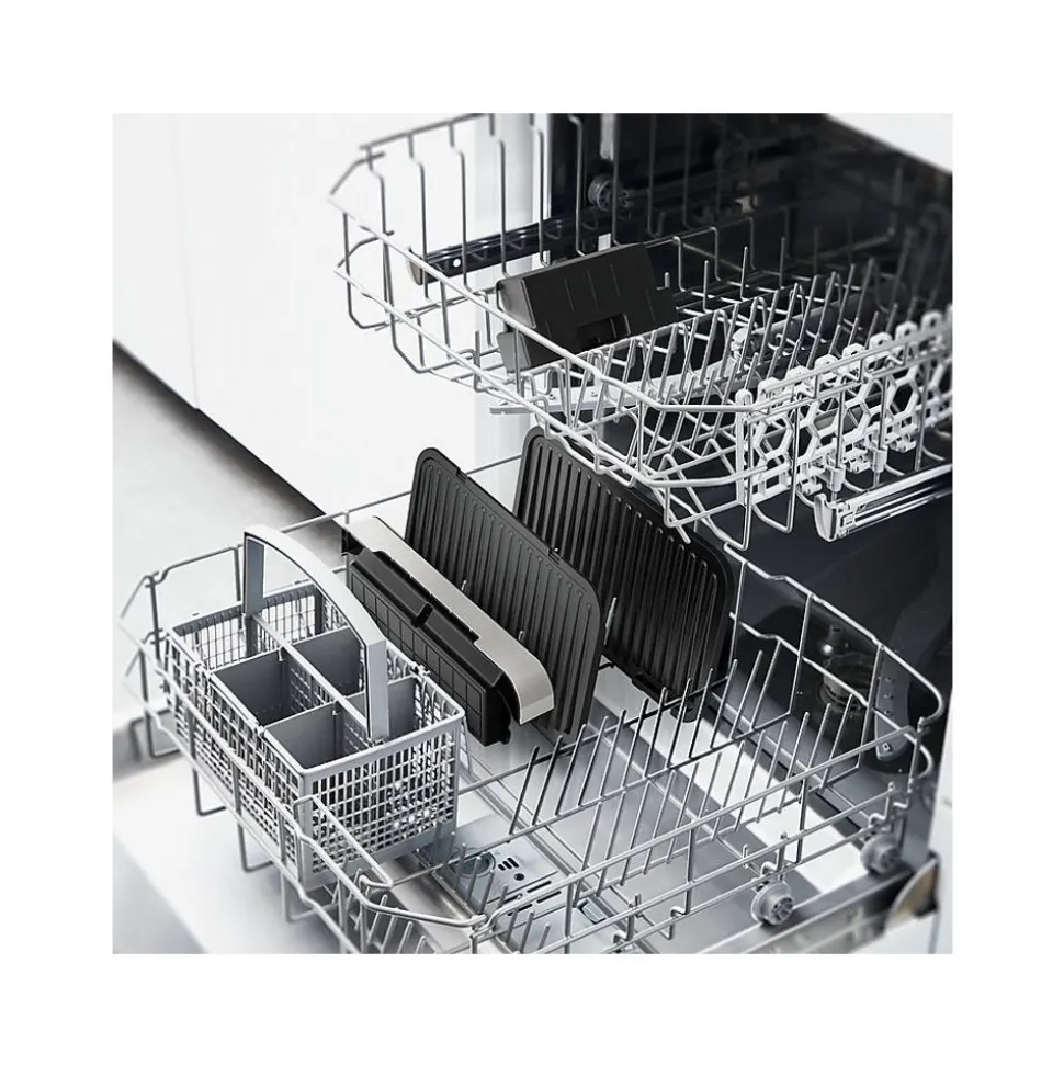 Vaatwasserbestendige antiaanbakplaten en opvangbakje voor vet en braadvocht, voor moeiteloos schoonmaken.