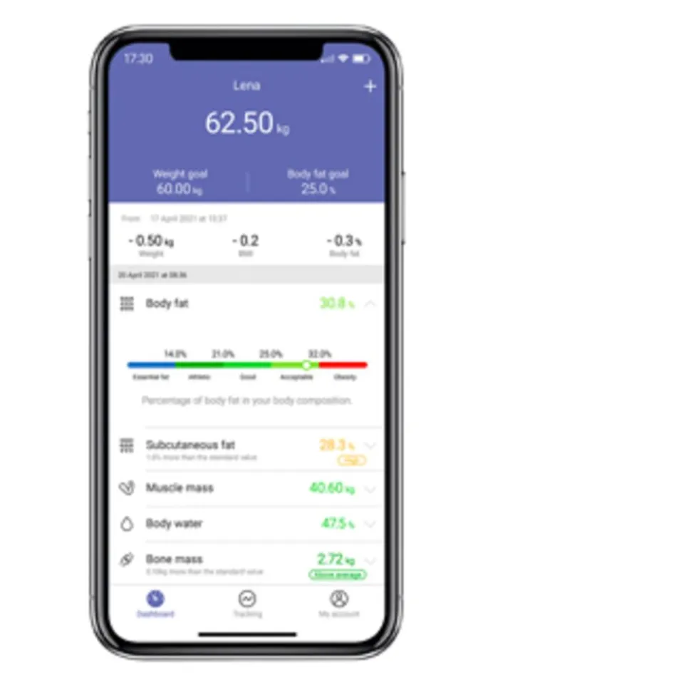 Of je nu een aantal kilo’s wilt afvallen of aan krachttraining doet, met de Goodvibes digitale weegschaal kan je je gewicht tot de gram exact opvolgen, je vetpercentage meten en bijgevolg je doel en gevoel bepalen. Dit hier is niet zomaar een personenweegschaal. Ook de 10 meetwaarden, waaronder BMI, lichaamsvetpercentage en spiermassa, worden weergegeven. Aan de hand van deze waarden krijgt je meer inzicht in de samenstelling en onderlinge verhoudingen van eigen lichaam, opdat je duidelijke en haalbare doelen kan stellen en resultaten kan boeken waar je ongetwijfeld voldoening uit zult halen. Ontdek deze slimme digitale weegschaal met een gebruiksvriendelijke gekoppelde app: alleen maar goede vibes!