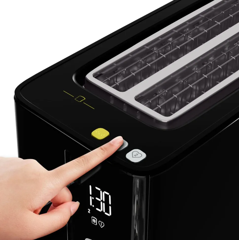 • eco-functie:verwarmt enkel de binnenwand aan de linkerkant, oftewel de eco-kant, van de toaster, waardoor het energieverbruik met 35% mindert. Ideaal voor wanneer u slechts 1 sneetje toast wilt!