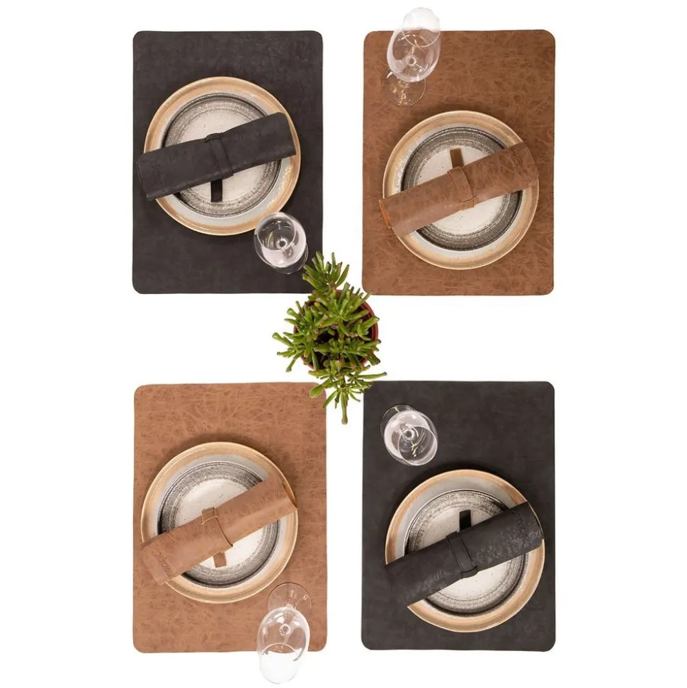 Ben jij op zoek naar een kwailiteitsvolle & moderne placemat die een vleugje klasse zal toevoegen aan je tafel? Dan zijn de vegan lederen placemats uit de TRUMAN collectie perfect voor jou! De rechthoekige placemat is 33 x 45 cm groot en is gemaakt uit 100% vegan leer aan beide zijden. De placemat kan je perfect combineren met de bijpassende tafelloper, bestekhouder, broodmandje & onderzetters voor de complete look!