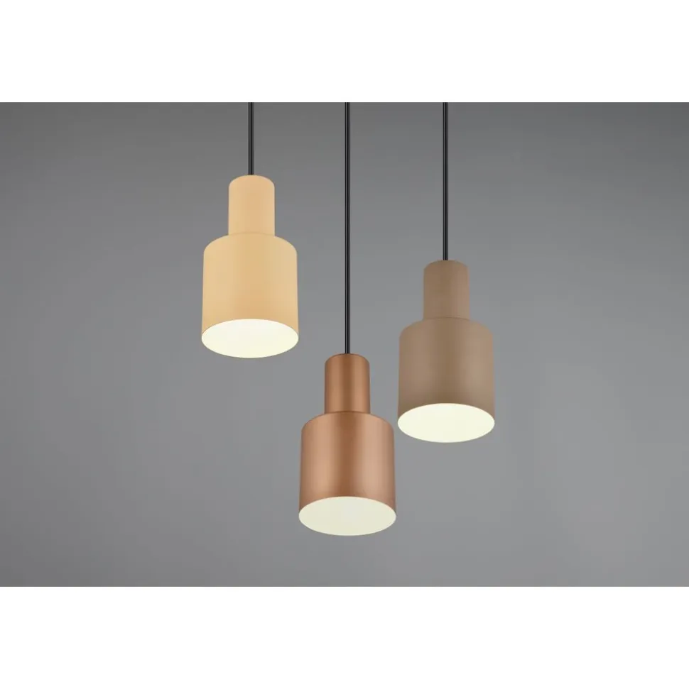 Het combineren van lichtkappen in verschillende kleuren en hoogtes trekt de aandacht en maakt van de lamp een bijzonder designelement in je huis – net als de lampen uit de AGUDO-serie. De hanglamp met drie lampen straalt pure gezelligheid en minimalistische esthetiek uit dankzij de natuurlijke kleurstelling en het elegante ontwerp. Boven een eet- of woonkamertafel verbetert de lamp de sfeer in de kamer met haar warme, natuurlijke uitstraling. De karakteristieke kleurencombinatie van gedempte natuurlijke kleuren en mat zwart geeft de armatuur stijl. De matte metalen afwerking van de lampenkappen rondt de armatuur perfect af en zorgt voor een elegante highlight. Het gebruik van LED lichtbronnen wordt aanbevolen voor energiebesparende verlichting. Deze vormen een ideaal alternatief voor conventionele halogeenlichtbronnen en bieden een hoge lichtkwaliteit en energiebesparingen tot 80%. Met LED lichtbronnen profiteert u ook van een lange levensduur en een lage warmteontwikkeling, terwijl het milieu wordt beschermd.