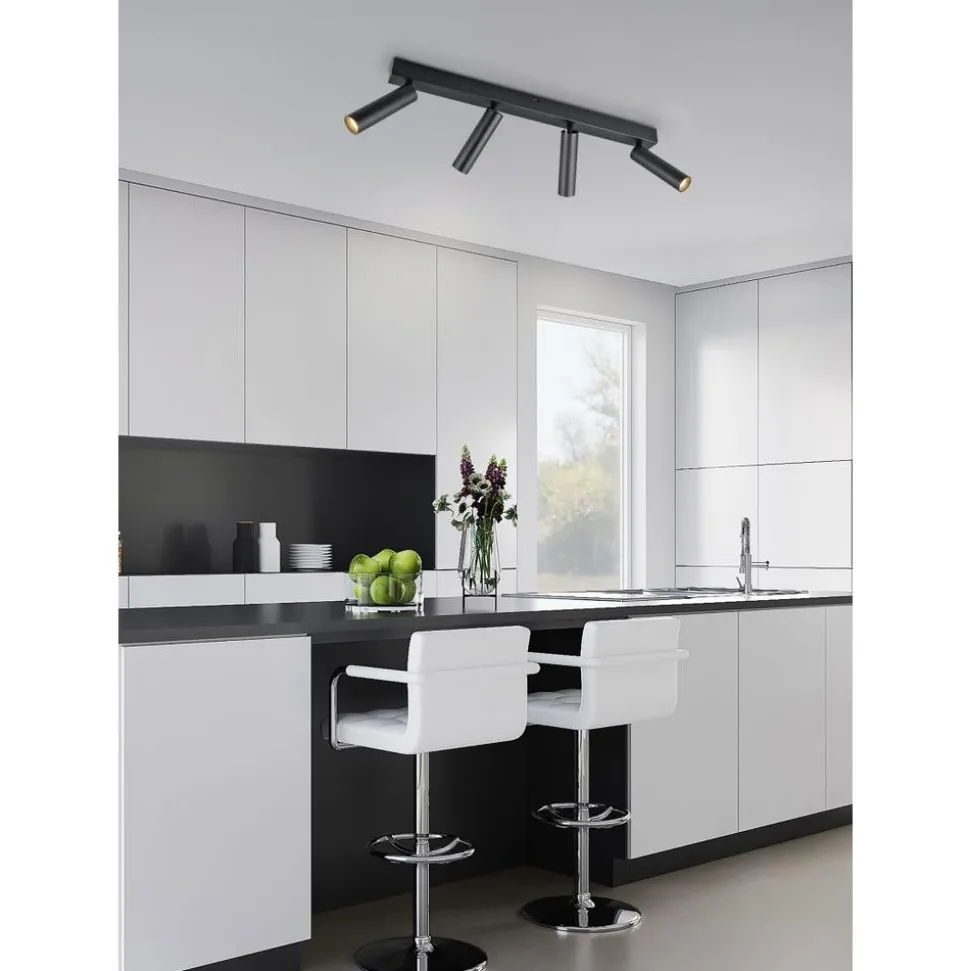 Ervaar de perfecte combinatie van heldere esthetiek en schitterend licht met de AMBALA spotserie. De viervlamige armatuur biedt flexibiliteit voor wand- of plafondmontage en combineert minimalistisch design met praktische functionaliteit. Met de dimschakelaar kan de lichtsterkte eenvoudig in drie stappen worden aangepast en de lichtkleur kan traploos direct op de armatuurbehuizing worden ingesteld. Als hoofdlichtbron of voor gerichte accentuering – de eenvoudige elegantie van AMBALA zet stijlvolle accenten in uw huis. Het neutrale kleurenschema in matzwart past moeiteloos in bestaande interieurs. De armatuur is ook voorzien van moderne LED-technologie, die wordt gekenmerkt door een hoge lichtkwaliteit en energie-efficiëntie. Vergeleken met conventionele halogeenlichtbronnen kan tot 80% op de energiekosten worden bespaard. LED lichtbronnen hebben ook een lange levensduur, produceren minder warmte en beschermen het milieu.