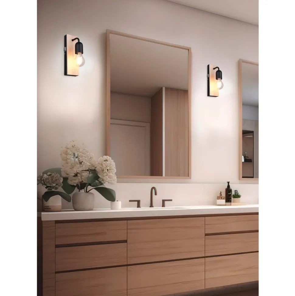 De ARTURO wandlamp combineert natuurlijk hout met elegant metaal en creëert zo een bijzonder accent in elke badkamer. Met een IP44-beschermingsgraad is ze ideaal voor vochtige ruimtes en veelzijdig in gebruik. Het geraffineerde ontwerp zorgt ervoor dat het licht direct in de omgeving schijnt en zo een aangename sfeer creëert. ARTURO combineert functionaliteit met esthetische aantrekkingskracht en geeft je badkamer een moderne, stijlvolle look. Het natuurlijke hout en matzwarte metaal verfraaien elk badkamerinterieur. Het gebruik van LED lichtbronnen wordt aanbevolen voor energiebesparende verlichting. Deze vormen een ideaal alternatief voor conventionele halogeenlichtbronnen en bieden een hoge lichtkwaliteit en energiebesparingen tot 80%. Met LED lichtbronnen profiteert u ook van een lange levensduur en een lage warmteontwikkeling, terwijl het milieu wordt beschermd.