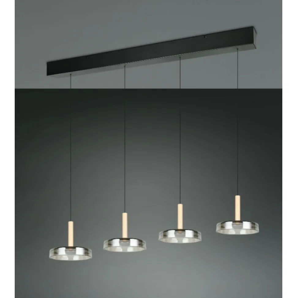 De CELESTE hanglamp combineert stijlvolle elegantie met hoge functionaliteit. Het unieke ontwerp van metaal, glas en hout creëert bijzondere accenten in elke kamer. De futuristisch ontworpen glazen kappen fascineren met een reflecterend oppervlak dat adembenemende lichtspelingen en een warme, uitnodigende sfeer creëert. Met de innovatieve Lift me functie kan de hoogte van de lichtbronnen flexibel worden aangepast aan jouw wensen. Boven de eettafel, in de keuken of in de woonkamer – CELESTE zorgt altijd voor de perfecte verlichting. Dankzij de geïntegreerde SWITCH-dimmer kun je de helderheid in drie niveaus rechtstreeks via de conventionele lichtschakelaar regelen. Zo heb je volledige controle over de lichtintensiteit en kun je het licht aanpassen aan je stemming of het moment van de dag. De stijlvolle combinatie van zwart mat metaal, verchroomd glas en natuurlijk hout past naadloos in zowel moderne als klassieke inrichtingsstijlen en laat de lamp stralen in elke omgeving. De armatuur is ook voorzien van moderne LED-technologie, die wordt gekenmerkt door een hoge lichtkwaliteit en energie-efficiëntie. Vergeleken met conventionele halogeenlichtbronnen kan tot 80% op de energiekosten worden bespaard. LED lichtbronnen hebben ook een lange levensduur, produceren minder warmte en beschermen het milieu.