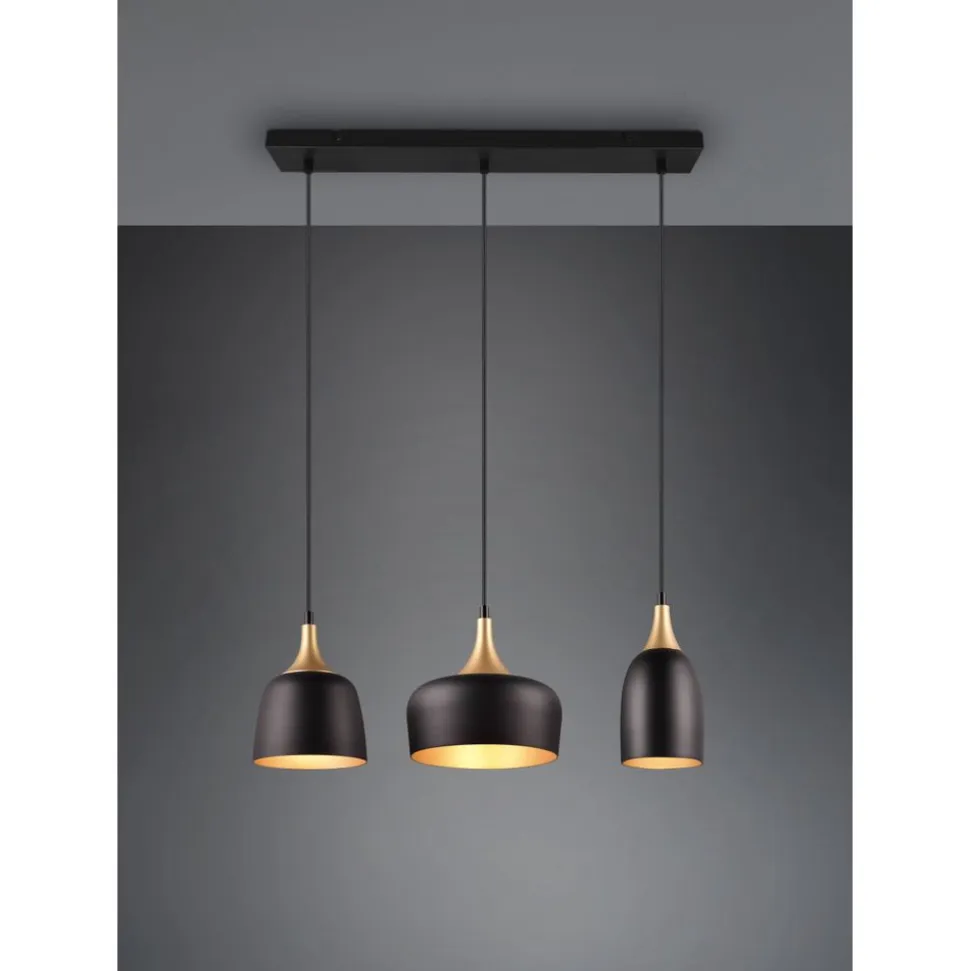 De CHIRAZ hanglamp in verfijnde loft chic! De gouden accenten van het armatuur breken de harde stijl van de industriƫle look en geven de CHIRAZ een verfijnde charme. De verschillende vormen en hoogtes van de drie kappen maken van de lamp een decoratief element met een sterk karakter, dat ieders aandacht trekt boven een eettafel of aanrecht. Het elegante metalen ontwerp in mat zwart en messing creƫert een sfeervolle ambiance en genereert de aandacht die het verdient binnen je vier muren. Het gebruik van LED lichtbronnen wordt aanbevolen voor energiebesparende verlichting. Deze vormen een ideaal alternatief voor conventionele halogeenlichtbronnen en bieden een hoge lichtkwaliteit en energiebesparingen tot 80%. Met LED lichtbronnen profiteert u ook van een lange levensduur en een lage warmteontwikkeling, terwijl het milieu wordt beschermd.