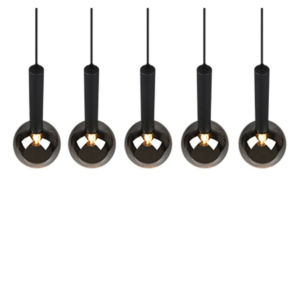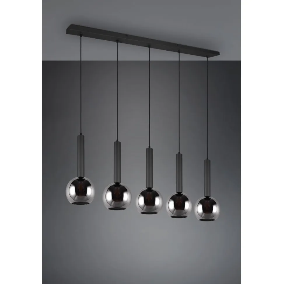 Tijdloos, strak en toch karakteristiek . De moderne hanglamp CLAYTON trekt iedereens aandacht door de combinatie van elegante glazen kappen en donker metaal. De ronde vorm van de vijf glazen kappen geeft het licht op een bijzondere manier af aan de omgeving en schept zo een gezellige sfeer. Geplaatst boven de woonkamertafel of in het midden boven de eettafel, komt de lamp goed tot haar recht en creëert nieuwe favoriete plekjes in uw huis. Het bedampte chroomglas en mat zwart metaal passen zich moeiteloos aan elke woonstijl en kleurconcept aan en zijn eenvoudig te combineren. Voor een energiebesparende verlichting is het gebruik van een ledlichtbron aanbevolen. Deze zijn een optimaal alternatief voor gewone halogeenlampen en staan voor een hoge lichtkwaliteit en een energiebesparing van tot 80%. Bovendien profiteert u bij ledlichtbronnen van een lange levensduur, een geringe warmteontwikkeling en spaart tegelijkertijd het milieu.