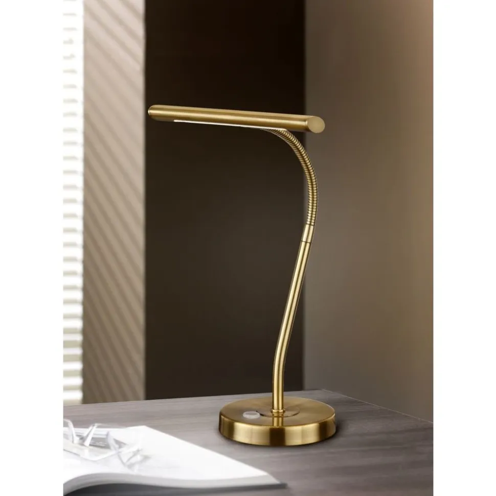 De CURTIS tafellamp is over de hele linie een blikvanger. Het aantrekkelijke ontwerp en de verstelbare flexibele arm maken dit armatuur tot een echt sieraad. Deze arm kan naar wens worden versteld en verlicht het gewenste gebied uitgebreid. De armatuur kan met de 4-voudige touchdimmer worden aangepast aan individuele eisen of lichtomstandigheden en blijft tegelijkertijd een smaakvol decoratief element. De matte messingkleur geeft de CURTIS armatuur een elegante uitstraling. Het kan worden geïntegreerd in zowel moderne als klassieke inrichtingsstijlen. Daarnaast beschikt de lamp over een moderne ledtechnologie die zich onderscheidt met een hoge lichtkwaliteit en energie-efficiëntie. In vergelijking met gewone halogeenlampen kan tot 80% bespaard worden op de energiekosten. Bovendien hebben ledlampen een lange levensduur, produceren minder warmte en zijn milieuvriendelijk.