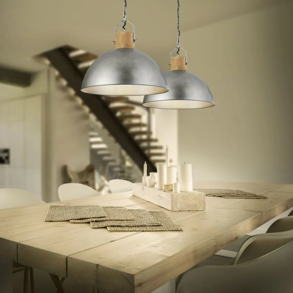 Wij hebben de juiste lampen voor je om je huis gezellig te maken! De DELHI hanglamp maakt indruk door de combinatie van hout en metaal en is een echte blikvanger in elke woonkamer. De lamp slaat een bijzonder mooi figuur boven de eettafel, waar ze als centraal element het best tot haar recht komt. De moderne hanglamp heeft een hoogte van 150 cm en een diameter van 45 cm. Met de geweldige combinatie van hout en metaal in antiek nikkel past de lamp perfect in moderne inrichtingsconcepten en is het een echt hoogtepunt voor Vinatge fans. Het gebruik van LED lichtbronnen wordt aanbevolen voor energiebesparende verlichting. Deze vormen een ideaal alternatief voor conventionele halogeenlichtbronnen en bieden een hoge lichtkwaliteit en energiebesparingen tot 80%. Met LED lichtbronnen profiteert u ook van een lange levensduur en een lage warmteontwikkeling, terwijl het milieu wordt beschermd.