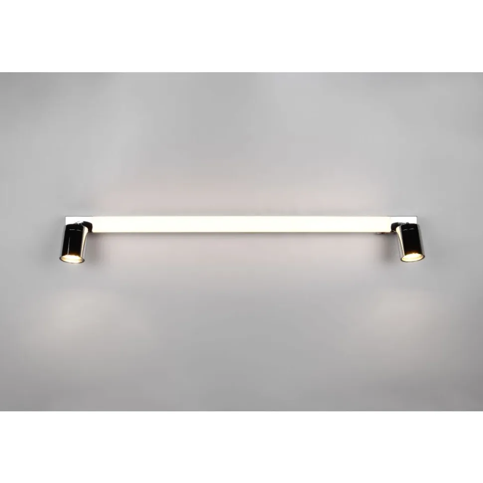 De ENRICO wandlamp is de ideale keuze voor elke moderne badkamer. Het elegante, langwerpige ontwerp zorgt voor een gelijkmatige en aangename verlichting. Bovendien zijn aan beide zijden van de hoofdlamp twee spots bevestigd voor gerichte lichtaccenten en een optimale verlichting. Met een IP44-beschermingsgraad is het armatuur optimaal beschermd tegen spatwater en dus perfect voor vochtige omgevingen. Een geïntegreerde schakelaar maakt het mogelijk om de hoofdlichtbron en de zijspots afzonderlijk aan te sturen, zodat je de verlichting flexibel kunt aanpassen aan je behoeften en voorkeuren. De lichtkleur kan ook individueel worden aangepast en de lamp heeft een praktische geheugenfunctie. De chromen afwerking benadrukt de puurheid en precisie van het ontwerp en voegt een vleugje luxe en duurzaamheid toe aan de badkamer. Het gebruik van LED lichtbronnen wordt aanbevolen voor energiebesparende verlichting. Deze vormen een ideaal alternatief voor conventionele halogeenlichtbronnen en bieden een hoge lichtkwaliteit en energiebesparingen tot 80%. Met LED lichtbronnen profiteert u ook van een lange levensduur en een lage warmteontwikkeling, terwijl het milieu wordt beschermd.