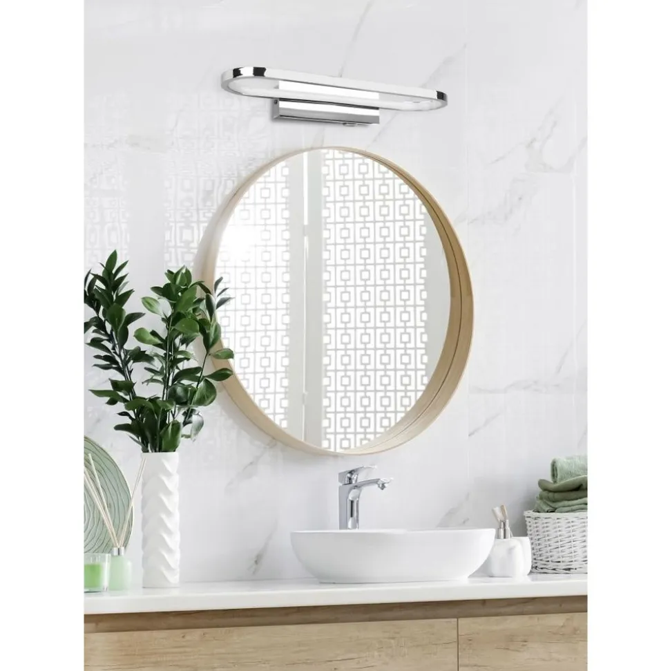 Het elegante samenspel van vorm en materiaal maakt van de GIANNI armatuur een indrukwekkend woonelement. Daarbij komt nog het langwerpige ovale design van de moderne armatuur, waardoor deze eenvoudig in bestaande meubels kan worden geïntegreerd. Dankzij de IP44-classificatie is de armatuur aan alle kanten beschermd tegen spatwater, waardoor ze bijzonder geschikt is voor gebruik in de badkamer boven de wastafel of boven de make-upspiegel. Het straalt ook een helder, aangenaam licht uit. Het chromen ontwerp verfraait je badkamer met moderne kleuraccenten. De armatuur is ook voorzien van moderne LED-technologie, die wordt gekenmerkt door een hoge lichtkwaliteit en energie-efficiëntie. Vergeleken met conventionele halogeenlichtbronnen kan tot 80% op de energiekosten worden bespaard. LED lichtbronnen hebben ook een lange levensduur, genereren minder warmte en beschermen het milieu.