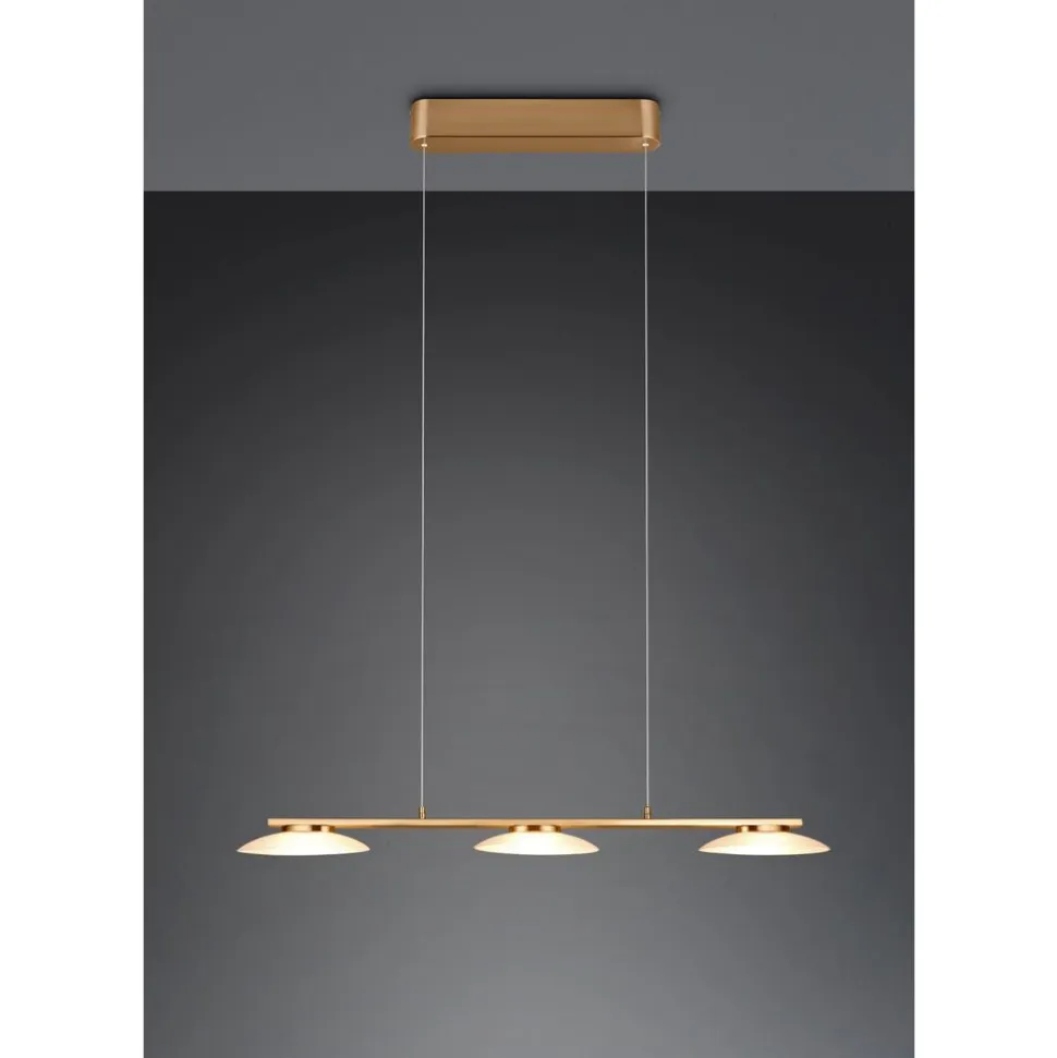 Messing lampen met glas kunnen op verschillende manieren worden gebruikt en geven blijk van een geraffineerde touch – net als de minimalistische, tijdloze MERTON hanglamp. De drie glazen elementen verspreiden het licht zachtjes in hun omgeving, waardoor de armatuur een geschikte lichtbron is boven een eettafel of aanrecht. Met de geïntegreerde SWITCH-dimmer kan de lichtsterkte bovendien in drie stappen (100%, 50%, 25%) worden aangepast met een conventionele lichtschakelaar. Laat je eettafel stralen als centraal element in de eethoek! De hanglamp creëert een harmonieus geheel dankzij het witte glas en het matte messing metaal. De armatuur is ook voorzien van moderne LED-technologie, die wordt gekenmerkt door een hoge lichtkwaliteit en energie-efficiëntie. Vergeleken met conventionele halogeenlichtbronnen kan tot 80% op de energiekosten worden bespaard. Met LED lichtbronnen profiteert u ook van een lange levensduur en een lage warmteontwikkeling, terwijl het milieu wordt beschermd.
