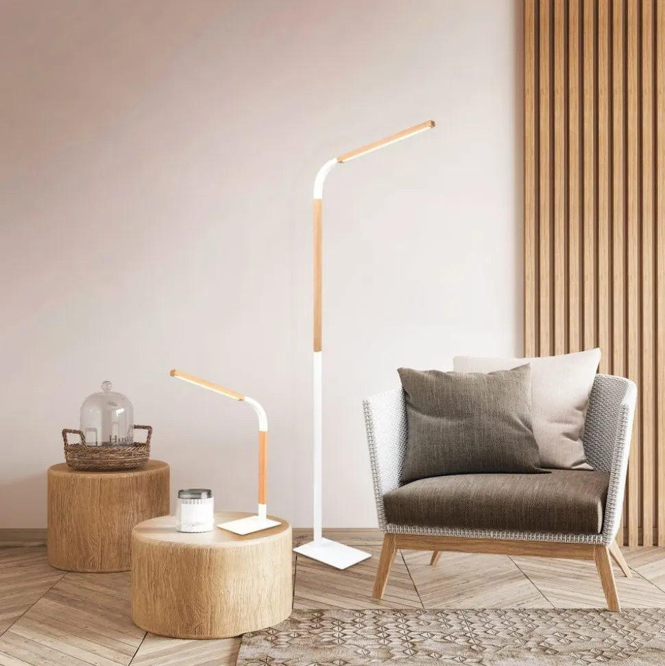 Geconcentreerd werken aan het bureau – dat vraagt om een harmonieuze lichtsfeer: Met de geïntegreerde SWITCH dimmer biedt de NORRIS tafellamp een oplossing die gemakkelijk is voor de ogen, omdat de helderheid naar wens kan worden aangepast in drie niveaus (100%, 50% en 25%). Dankzij de flexibele arm van de NORRIS kan het licht individueel worden gericht, waardoor de armatuur de ideale keuze is voor elke werkplek. Het puristische silhouet van de lamp en de geslaagde combinatie van natuurlijk hout en mat wit metaal zijn in elk opzicht indrukwekkend. De armatuur is ook voorzien van moderne LED-technologie, die wordt gekenmerkt door een hoge lichtkwaliteit en energie-efficiëntie. Vergeleken met conventionele halogeenlichtbronnen kan tot 80% op de energiekosten worden bespaard. LED lichtbronnen hebben ook een lange levensduur, produceren minder warmte en beschermen het milieu.