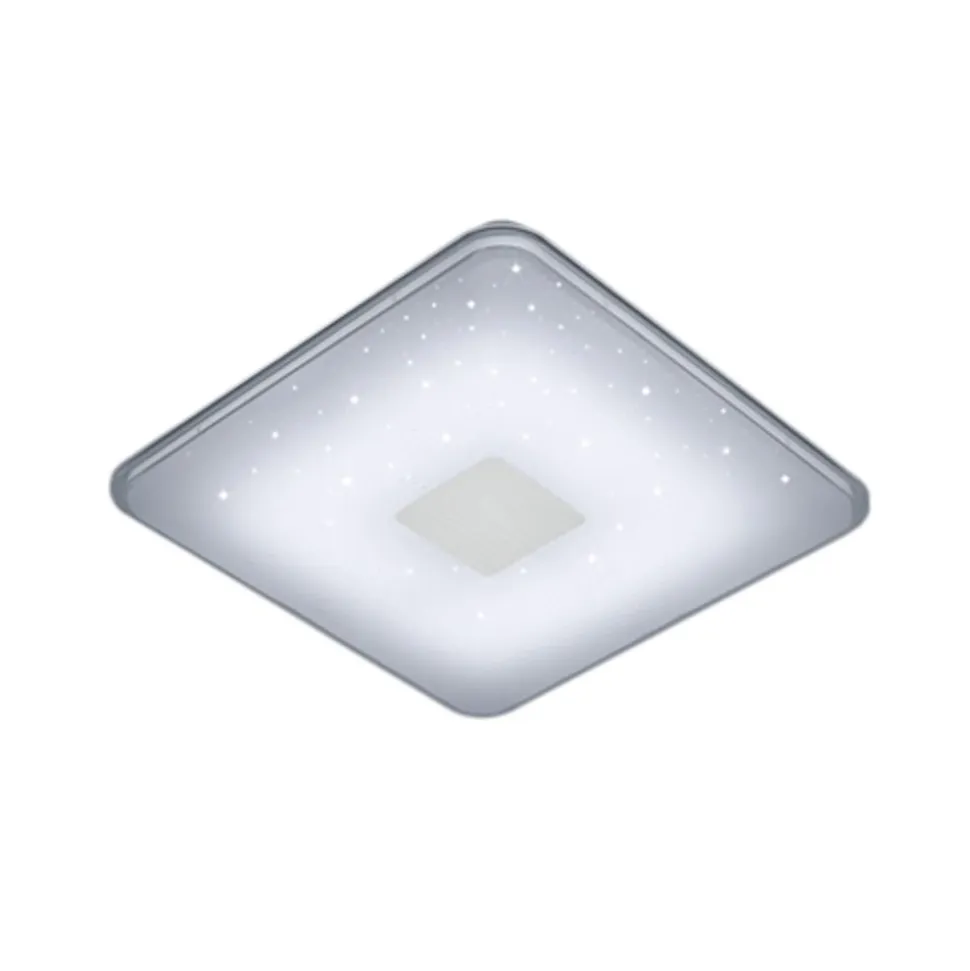 De plafondlamp SAMURAI – een moderne en eenvoudige lamp die je uitnodigt om te dromen dankzij het sterrenhemeleffect. Het maakt ook indruk met zijn vele verschillende functies, die kunnen worden bediend met de meegeleverde afstandsbediening. Je hebt de mogelijkheid om het licht continu te dimmen, de lichtkleur aan te passen of de nachtlichtfunctie in te schakelen. Het is ideaal om bijvoorbeeld de slaapkamer van een kind te verlichten. De lamp is vierkant en heeft een zijlengte van 42,5 cm. Het ontwerp in de kleur wit nodigt uit om te combineren met andere kleuren of kan prachtig worden geïntegreerd in een modern interieur. Daarnaast beschikt de lamp over een moderne ledtechnologie die zich onderscheidt met een hoge lichtkwaliteit en energie-efficiëntie. In vergelijking met gewone halogeenlampen kan tot 80% bespaard worden op de energiekosten. Bovendien hebben ledlampen een lange levensduur, produceren minder warmte en zijn milieuvriendelijk
