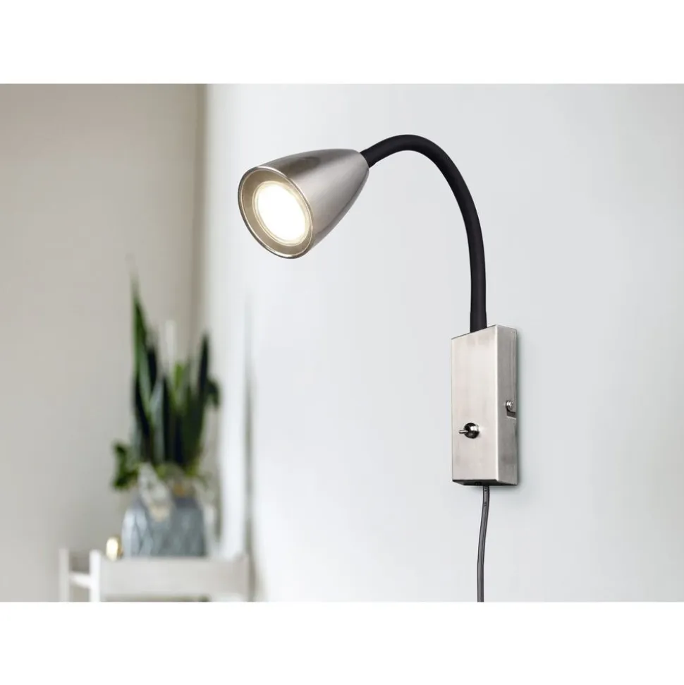 Creƫer mooie lichtmomenten in uw slaapkamer met de klassieke wandlamp WANDA. Op de juiste plaats geplaatst, zorgt ze voor een optimale verlichting door de flexibele en individuele instelmogelijkheden. De flexibiliteit van de lamp wordt uitgebreid met de FLEXconnect-functie, omdat ze ook geschikt is voor een vaste aansluiting zonder kabel en bedienbaar met een gewone wandschakelaar. In dit geval kan het snoer van de lamp worden verwijderd. Het moderne en elegante design wordt onderstreept door de matte nikkelkleur. Voor een energiebesparende verlichting is het gebruik van een ledlichtbron aanbevolen. Deze zijn een optimaal alternatief voor gewone halogeenlampen en staan voor een hoge lichtkwaliteit en een energiebesparing van tot 80%. Bovendien profiteert u bij ledlichtbronnen van een lange levensduur, een geringe warmteontwikkeling en spaart tegelijkertijd het milieu.