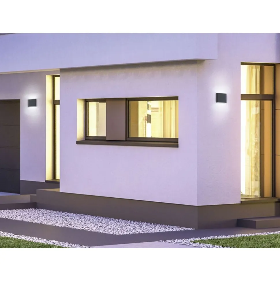 De moderne buitenwandlamp THAMES II maakt indruk met prachtige lichteffecten en tovert dankzij de op- en neerwaartse lichtbundels geweldige accenten tevoorschijn in buitenruimtes. Binnenshuis is ze bijzonder effectief als eigentijdse verlichting voor gangen en hallen of als prachtige design woonkamerlamp. Ongeacht het doel waarvoor je je wandlamp nodig hebt, of je nu op zoek bent naar LED buitenwandlampen voor gevelverlichting bij de ingang, moderne terrasverlichting, gerichte padverlichting of binnenverlichting zoals ganglampen of woonkamerlampen, de wandlamp voldoet in elk opzicht aan al deze eisen. De antraciet gegoten aluminium versie kan klassieke en moderne stijlconcepten aanvullen. Daarnaast beschikt de lamp over een moderne ledtechnologie die zich onderscheidt met een hoge lichtkwaliteit en energie-efficiëntie. In vergelijking met gewone halogeenlampen kan tot 80% bespaard worden op de energiekosten. Bovendien hebben ledlampen een lange levensduur, produceren minder warmte en zijn milieuvriendelijk.