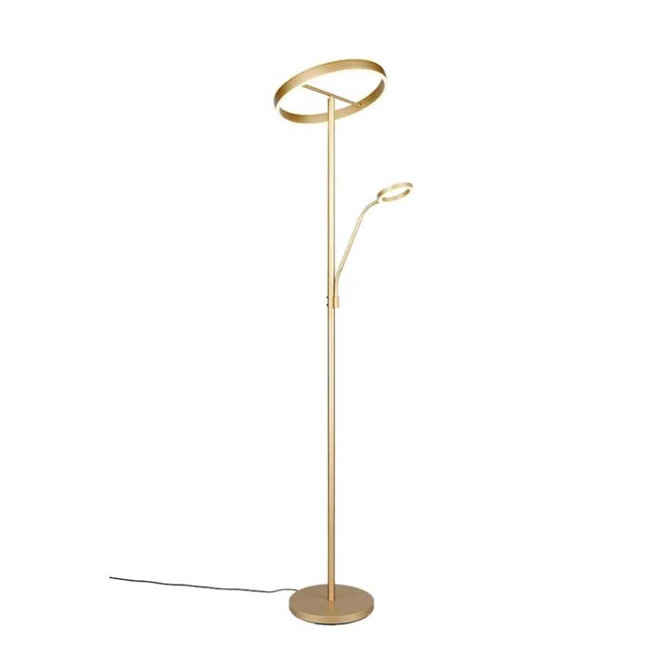 De WILLIS vloerlamp maakt indruk met zijn elegante ontwerp en verfijnde functionaliteit. De ringvormige lampkop en de flexibele leesarm bieden een breed scala aan verlichtingsopties die kunnen worden aangepast aan individuele behoeften. Beide lichtbronnen kunnen apart worden geschakeld, terwijl de lichtkleur en helderheid individueel kunnen worden aangepast. Dit maakt precieze controle over de verlichting mogelijk, of het nu voor gezellige avonden op de bank is of als discrete achtergrondverlichting. De moderne look in goudkleur geeft de lamp een tijdloze uitstraling die moeiteloos past bij verschillende inrichtingsstijlen. De armatuur is ook voorzien van moderne LED-technologie, die wordt gekenmerkt door een hoge lichtkwaliteit en energie-efficiëntie. Vergeleken met conventionele halogeenlichtbronnen kan tot 80% op de energiekosten worden bespaard. LED lichtbronnen hebben ook een lange levensduur, produceren minder warmte en beschermen het milieu.