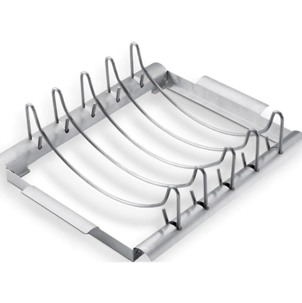 Mals vlees dat zo van het bot valt. Verrukkelijke braadstukken met een heerlijke smaak door de rook onder het deksel van de barbecue. Het twee-in-een ontwerp van de Deluxe vleeshouder is geschikt voor meerdere spareribs zodat u meer ruimte op uw grillrooster krijgt. Het kan ook worden gebruikt als een stevige korf voor sappige braadstukken.