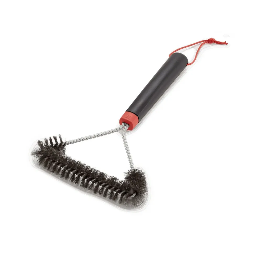 Deze driezijdige reinigingsborstel is ontworpen om vet en vuil van grillroosters van alle maten te verwijderen. Het handvat biedt een goede grip wanneer je aangekookte etensresten verwijdert van al die plaatsen in je barbecue die lastig te bereiken zijn. Gebruik deze reinigingsborstel om je grillroosters vóór elk gebruik schoon te maken zodat je barbecue langer meegaat en je volgende maaltijd net zo heerlijk is als de vorige.