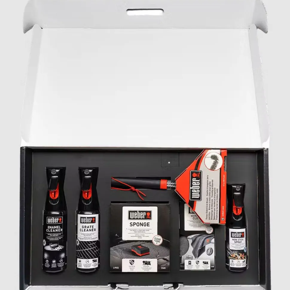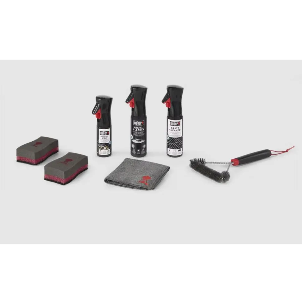 Laat uw houtskoolbarbecue jarenlang goed presteren – net als op de dag dat u hem kocht. Onderwerp hem eens in de zoveel tijd aan een grondige schoonmaakbeurt en geniet seizoen na seizoen van prachtige barbecueavonden. Met de reinigingsset voor Weber® houtskoolbarbecues kunt u uw barbecue binnen een uurtje weer in topconditie krijgen. Haal al het vuil en vet aan de binnen- en buitenkant weg voor een perfecte warmteverdeling, optimale luchtstroom en veilige werking. Maak het daarna af met de Emaillereiniger om de ketel en het deksel brandschoon en blinkend achter te laten. Bevat een reinigingsborstel, schoonmaakproducten, een spons, doek en anti-aanbakspray.