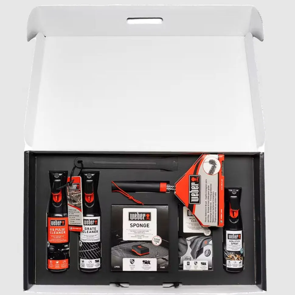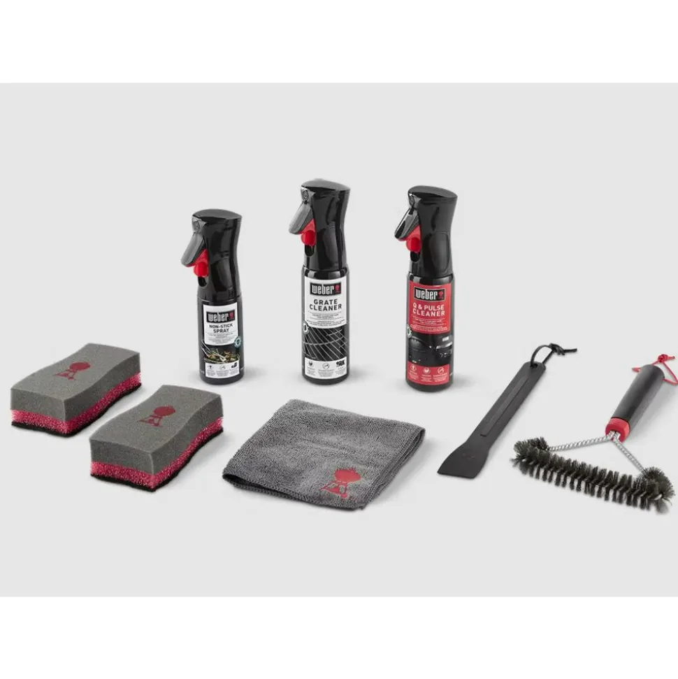 Het schoonmaken van uw barbecue was nog nooit zo makkelijk. Met de speciaal voor Weber® Q en Pulse barbecues gemaakte reinigingsset hebt u alle tools in handen om uw barbecue er altijd tiptop uit te laten zien. Voor de allerlekkerste gerechten tijdens al uw barbecuesessies en jaar na jaar geweldige prestaties. Alles wat u nodig hebt, vindt u in deze doos, waaronder een efficiënte borstel, schoonmaakproduct, spons, ketelschraper, doek en anti-aanbakspray.