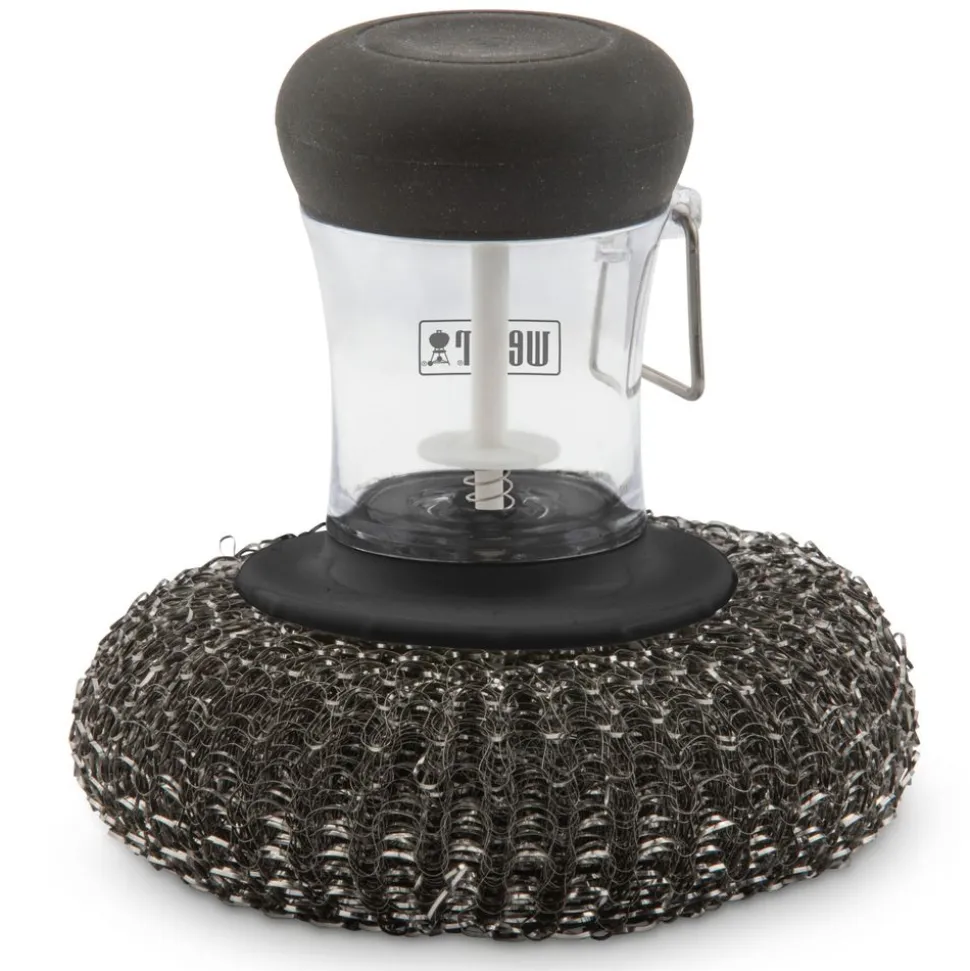 De multi-cleaner verwijdert aangekoekte etensresten en beschermt tegelijkertijd het gladde oppervlak van uw bakplaat. Plaats de spons op de bakplaat en druk zacht op het handvat zodat er wat zeep uitkomt.