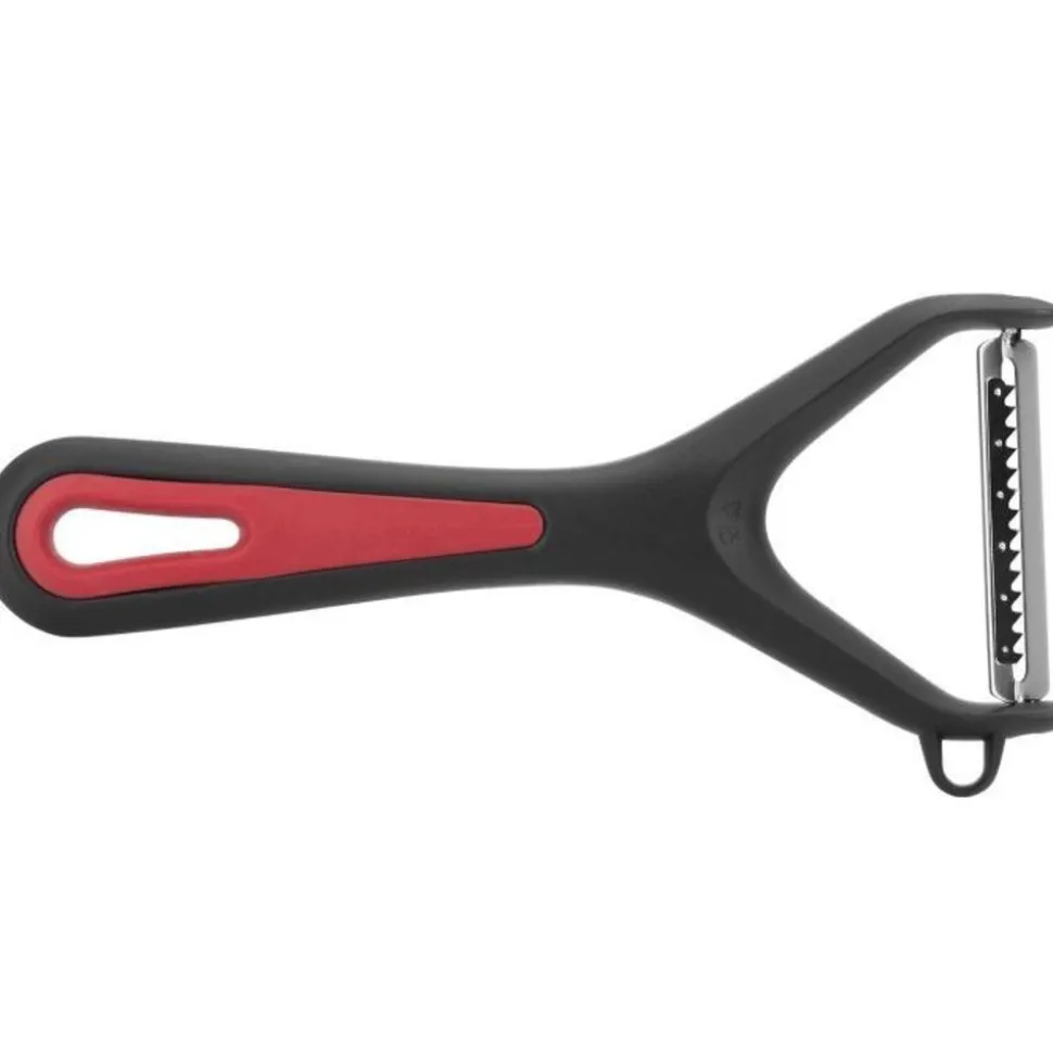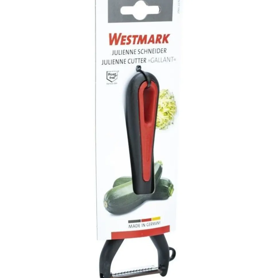 De juliennesnijder “Gallant” in eenvoudig zwart design is perfect voor het snijden van fijne groentereepjes voor het decoreren van soepen of het bereiden van wokmaaltijden. Met zijn scherpe tanden zijn de groenten in een mum van tijd met weinig moeite in reepjes te snijden. De scherpe koekjesvormer helpt bij het verwijderen van beschadigde plekken en lelijke vlekken. Hij is gemakkelijk schoon te maken, vaatwasmachinebestendig en dankzij de ophanglus plaatsbesparend op te bergen – zodat de keuken na het koken snel weer opgeruimd is.