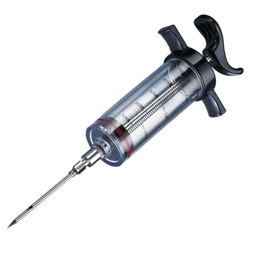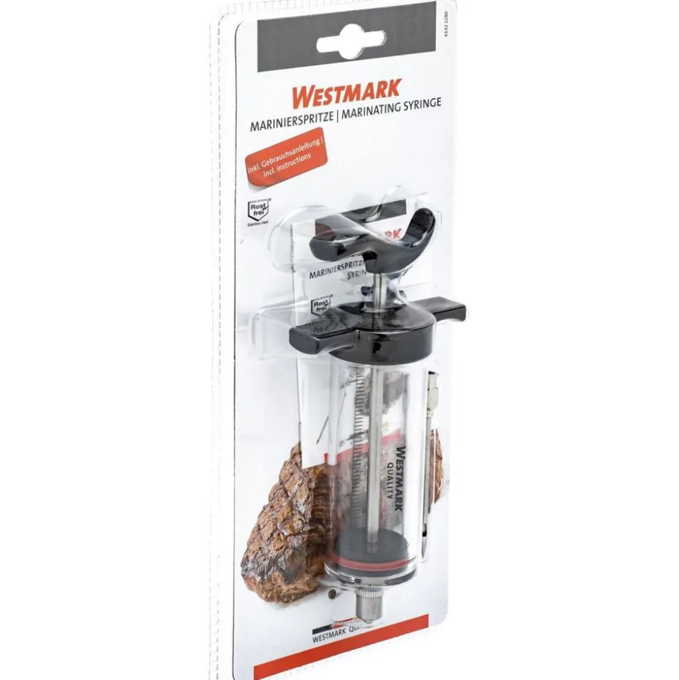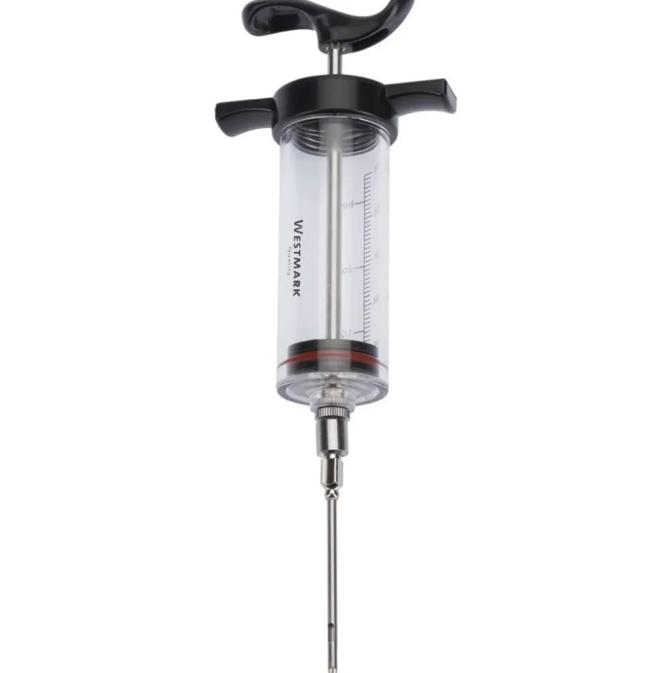 De hoogwaardige baster met roestvrijstalen injector is zeer veelzijdig. U kunt hem gebruiken om braadstukken en vlees te bevochtigen, marineren en glazuren, en om marinade direct aan het gebraad toe te voegen. Hierdoor blijft het gebraad lekker sappig en droogt het niet uit.