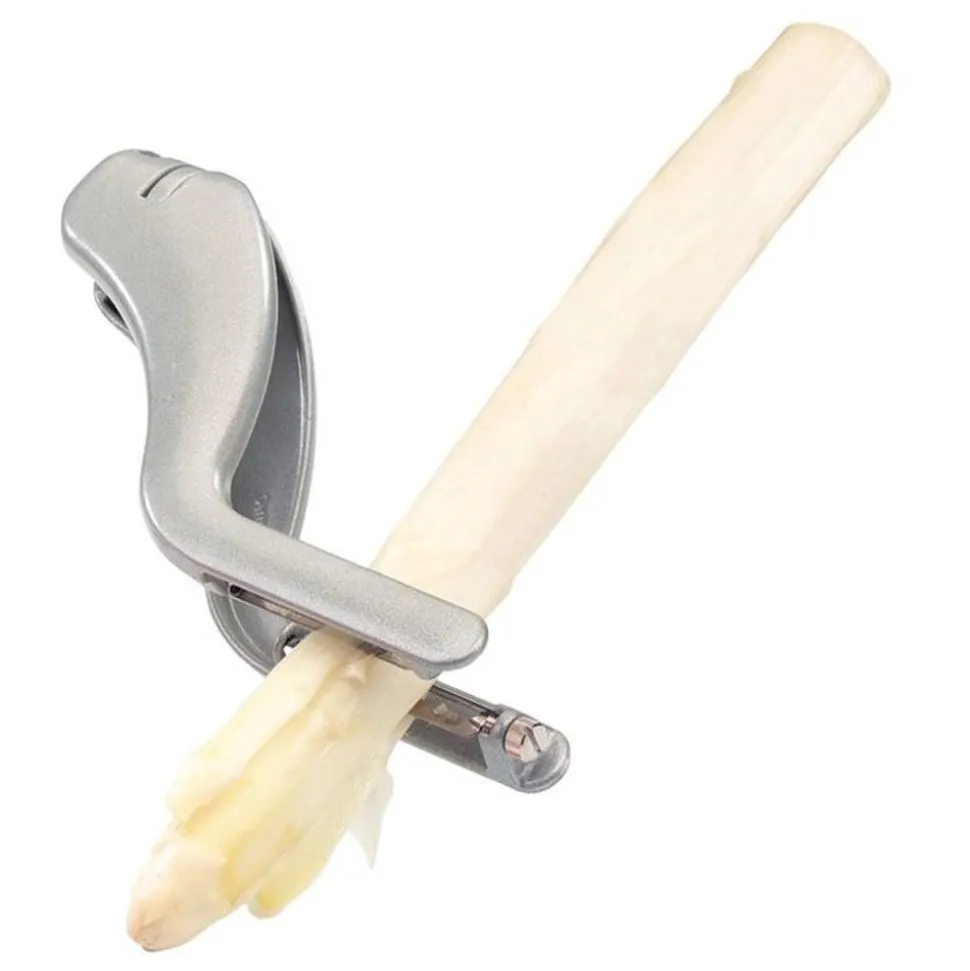 De “Peel-Star Alu” groente / dubbele dunschiller is een speciale dunschiller die met twee aan weerszijden liggende messen lange groenten zoals asperges, wortelen, courgettes, aubergines en komkommers razendsnel schilt. De beweegbare messen passen zich aan de contouren van het voedsel aan. Na een paar minuten heb je het onder de knie en zal de Peel-Star je verbazen met zijn efficiëntie. De dunschiller zelf is gemaakt van hoogwaardig aluminium met een speciale voedselveilige coating en de scherpe messen zijn gemaakt van roestvrij staal.