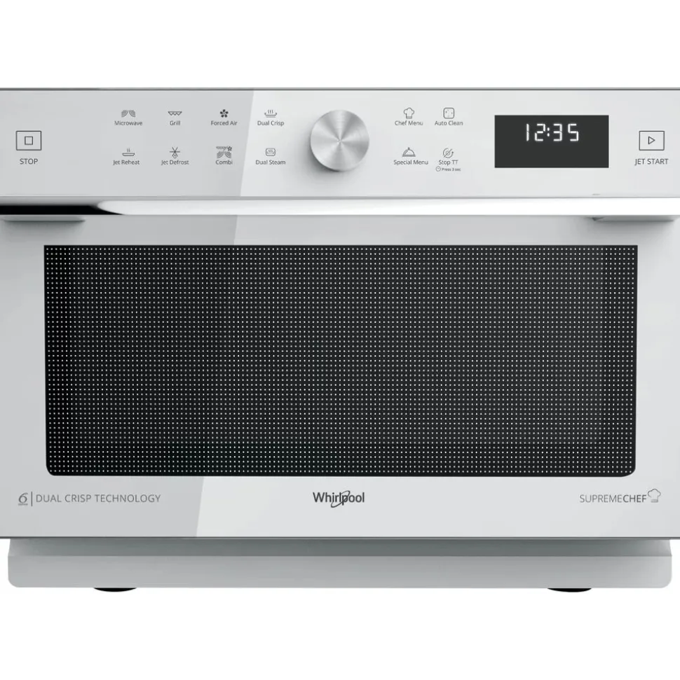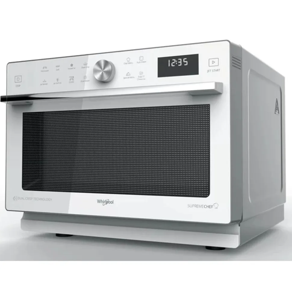 Kenmerken van deze Whirlpool vrijstaande microgolfoven: kleur wit. Uitzonderlijke binnenruimte. Combinatietechnologie die de kookflexibiliteit van traditionele ovens biedt. De exclusieve 6TH SENSE technologie stelt tijdens het koken automatisch de tijd, de temperatuur en het energieverbruik in. Crispfunctie, voor heerlijk krokante quiches, taarten en pizza’s.