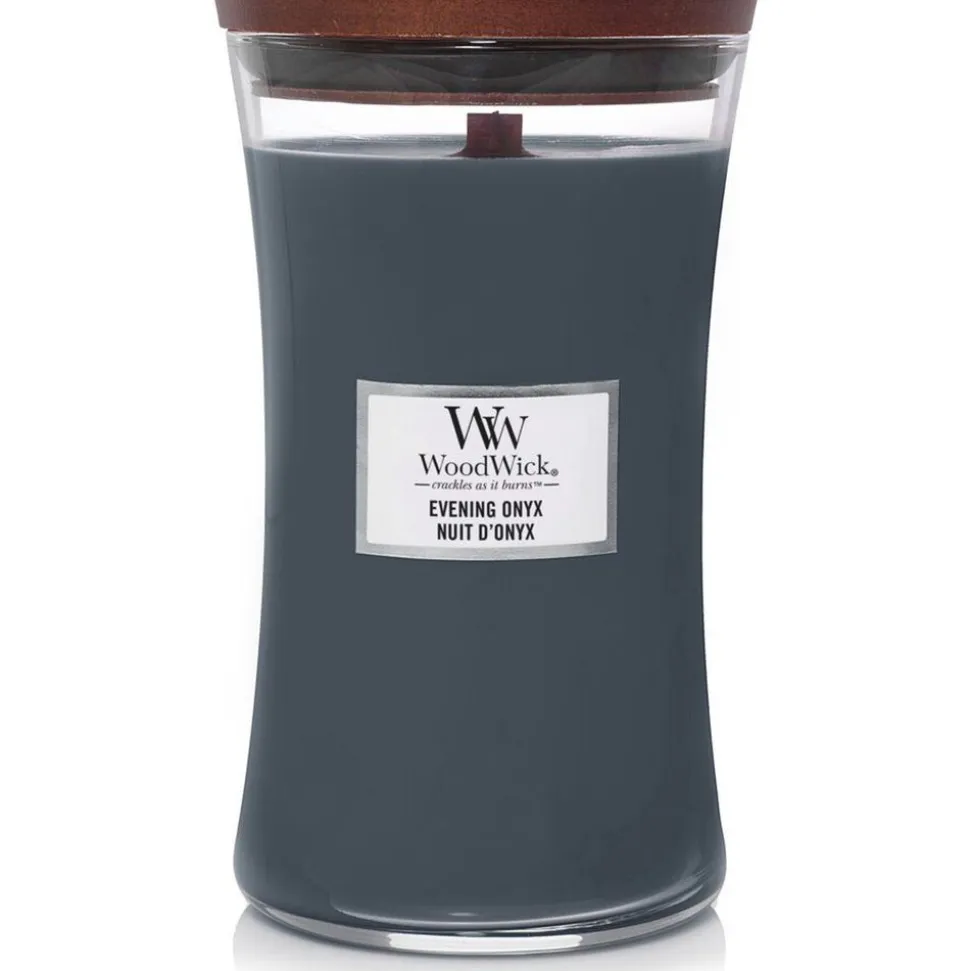 De WoodWick Geurkaars Large Evening Onyx is een luxe geurkaars die zorgt voor een ontspannen en sfeervolle ambiance in huis. De kaars is gemaakt van hoogwaardige sojawas en heeft een houten lont, waardoor er een knisperend geluid ontstaat tijdens het branden. De geur Evening Onyx is een verleidelijke mix van zwarte orchidee, amber en sandelhout, die zorgt voor een warme en mysterieuze sfeer.