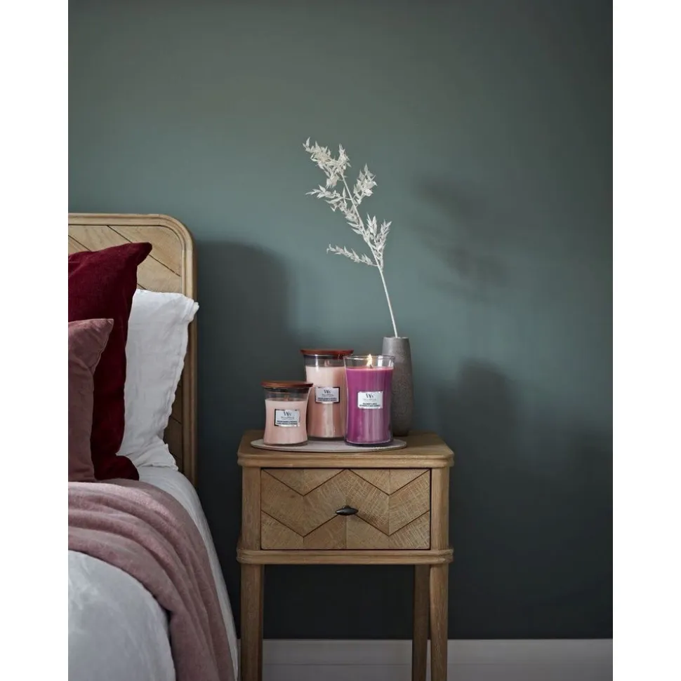 De WoodWick Wild Berry & Beets geur is geïnspireerd op trendy geurnoten van aardse groenten, zomerhout en de heerlijkste bloemen. Deze WoodWick lentegeur verspreidt de aroma’s van wilde bessen en rijke bieten, doordrenkt met eiken, sinaasappel en orris geuren door je huis. Daarnaast geeft de houten lont een rustgevend knisperend geluid, alsof de haard aanstaat. Time to relax. Met deze WoodWick geurkaars geniet je ongeveer 130 branduren van een heerlijk geurende kaars, die alle zintuigen prikkelt.