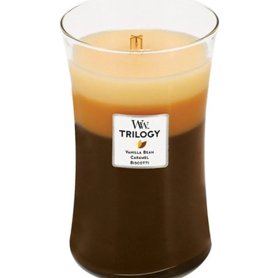 Stel je voor: na een lange dag kom je thuis, ploft op de bank en steekt de kaarsen aan voor wat extra gezelligheid. Wie wil er dan niet een heerlijke, huiselijke geur ruiken zodra de kaarsen aan het branden zijn? Geniet van een trilogy van de geuren Vanilla Bean, Caramel en Biscotti. De houten lont geeft een rustgevend knisperend geluid, alsof de haard aanstaat. Time to relax. Met deze WoodWick geurkaars geniet je ongeveer 130 branduren van een heerlijk geurende kaars, die alle zintuigen prikkelt.