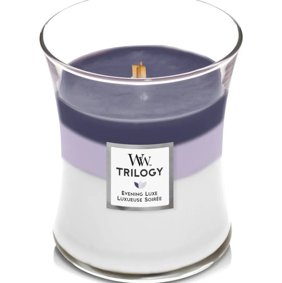 De WoodWick Trilogy Hourglass Medium geurkaars – Evening Luxe creeërt een unieke geurbeleving als lagen samensmelten.
