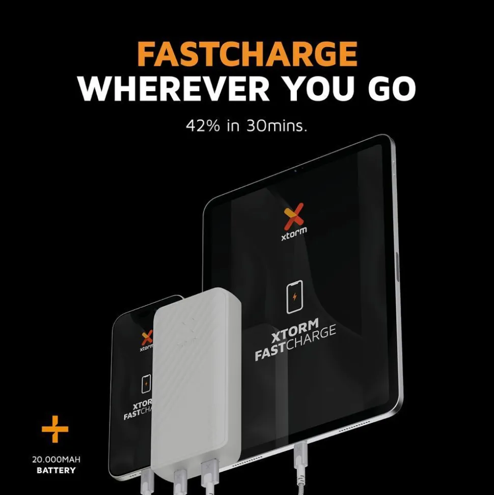 Met deze Xtorm Go2 Power Bank en zijn enorme capaciteit van 20.000 mAh verdwijnt de stress van het opladen direct. Dankzij de 15W FastCharge zijn uw apparaten in een mum van tijd volledig opgeladen, en dat minimaal 4 keer op één lading! Gebruik de USB-A- en USB-C-aansluitingen om twee apparaten tegelijk snel op te laden. Dankzij de pass-through-functie kunt u een apparaat opladen terwijl de Power Bank zelf wordt opgeladen!