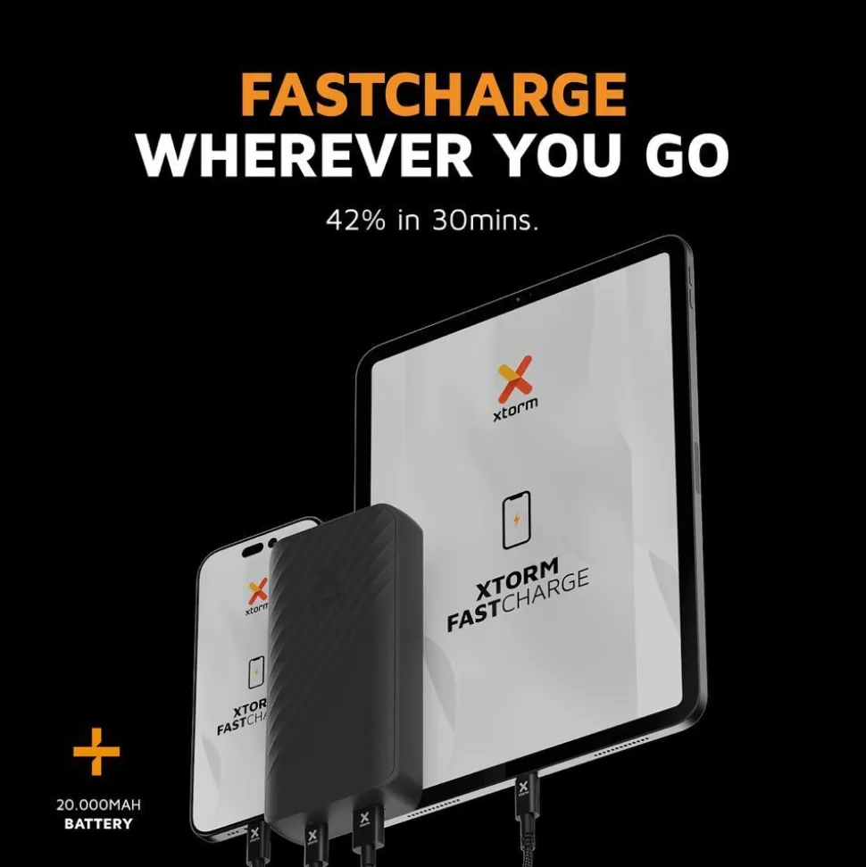 Met deze Xtorm Go2 Power Bank en zijn enorme capaciteit van 20.000 mAh verdwijnt de stress van het opladen direct. Dankzij de 15W FastCharge zijn uw apparaten in een mum van tijd volledig opgeladen, en dat minimaal 4 keer op één lading! Gebruik de USB-A- en USB-C-aansluitingen om twee apparaten tegelijk snel op te laden. Dankzij de pass-through-functie kunt u een apparaat opladen terwijl de Power Bank zelf wordt opgeladen!